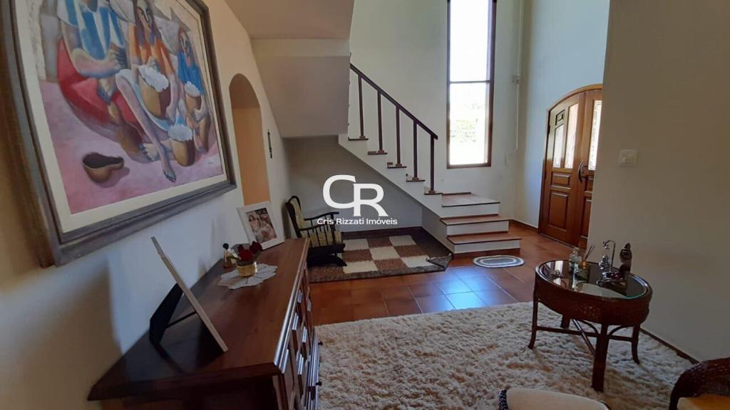 A casa principal é composta por 2 suítes, 2 quartos, 1 roupeiro e 1 banheiro no piso superior. Há também um espaço para leitura próximo à escada de madeira maciça, proporcionando um ambiente ideal para relaxar e desfrutar de um bom livro. Todos os ambientes possuem armários planejados de madeira maciça, conferindo elegância e conforto. No piso térreo, a chácara conta com sala de estar, sala de jantar, lareira, home bar, lavabo, cozinha com despensa e sala de jantar.