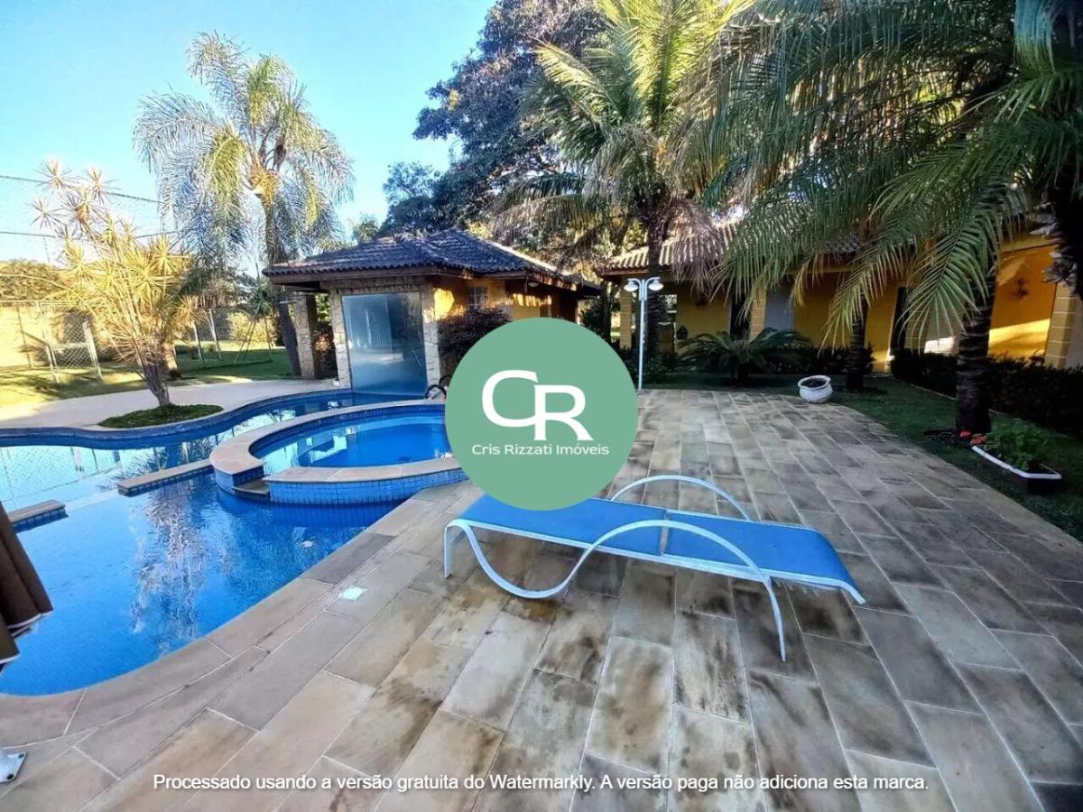 Chácara com 5 suítes, sala com 4 ambientes, cozinha planejada, linda pisciana aquecida, sauna, churrasqueira, pé direito alto, ótimo condomínio de alto padrão e ótima localização.