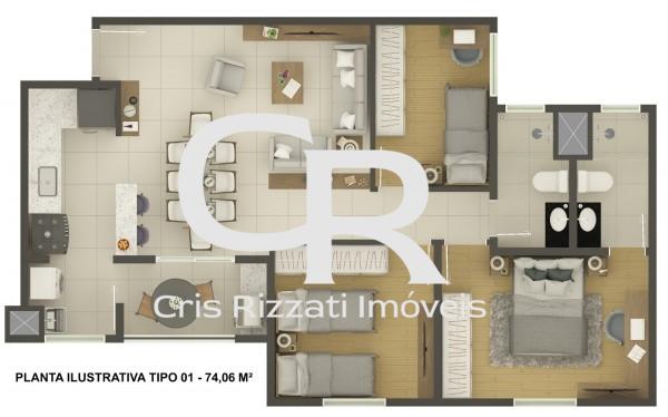 Área privativa: 74,06 m²